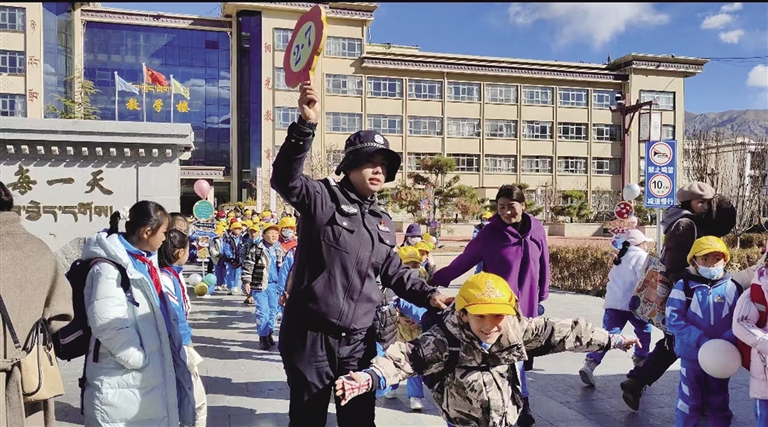 又是一年“開學(xué)季”,為切實(shí)強(qiáng)化校園安全防線、凈化校園周邊環(huán)境,把好開學(xué)安全“第一關(guān)”,拉薩市公安局全力開啟“護(hù)學(xué)模式”,進(jìn)一步筑牢校園安全“防火墻”,為新學(xué)期撐起“平安傘”。2月28日是拉薩市各中小學(xué)校報(bào)到的時(shí)間,拉薩公安用實(shí)際行動(dòng)站好護(hù)學(xué)崗,勾勒出了一道道護(hù)安護(hù)暢風(fēng)景線。