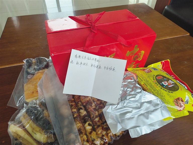民警們熱心的幫助、暖心的話語(yǔ),在曾先生心中留下了深刻的印象。雖然已經(jīng)過去了幾個(gè)月,但每每想起那次相遇,他的心頭總是涌起一股暖流。帶著這份感激和惦念,曾先生特意為孔瑪邊境派出所的民警們寄去了家鄉(xiāng)特產(chǎn)臘肉和香腸,還有一張寫滿祝福的卡片。