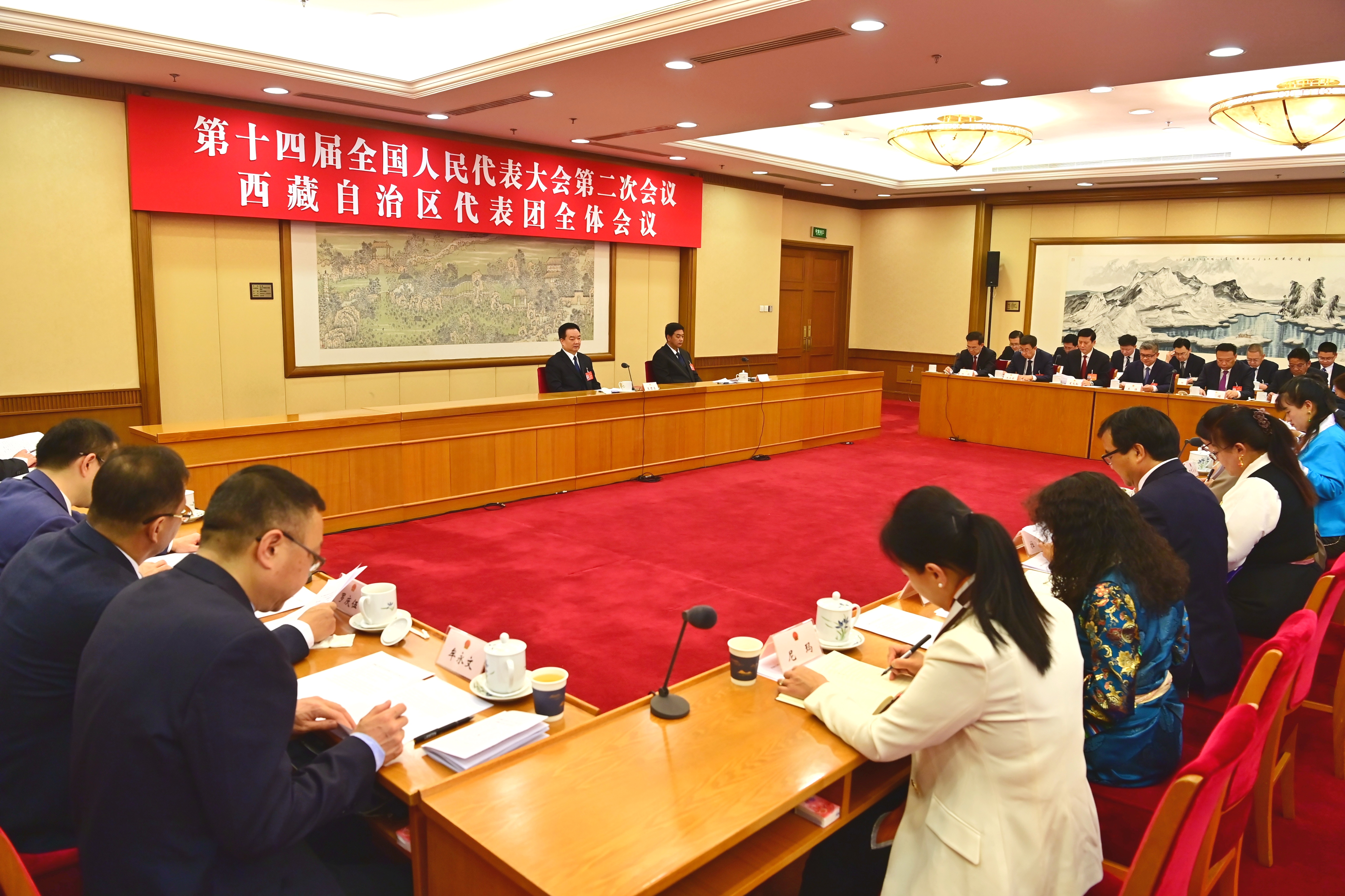 3月10日,西藏代表團(tuán)舉行全體會(huì)議,繼續(xù)審議全國人大常委會(huì)工作報(bào)告、最高人民法院工作報(bào)告、最高人民檢察院工作報(bào)告;審議關(guān)于政府工作報(bào)告、年度計(jì)劃、年度預(yù)算的決議草案。這是會(huì)議現(xiàn)場。記者 旦增西旦 攝