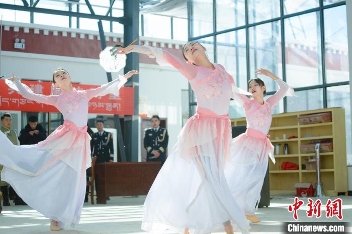 圖為西藏出入境邊防檢查總站文藝骨干為群眾表演舞蹈《春頌》 。蔣美靈 攝