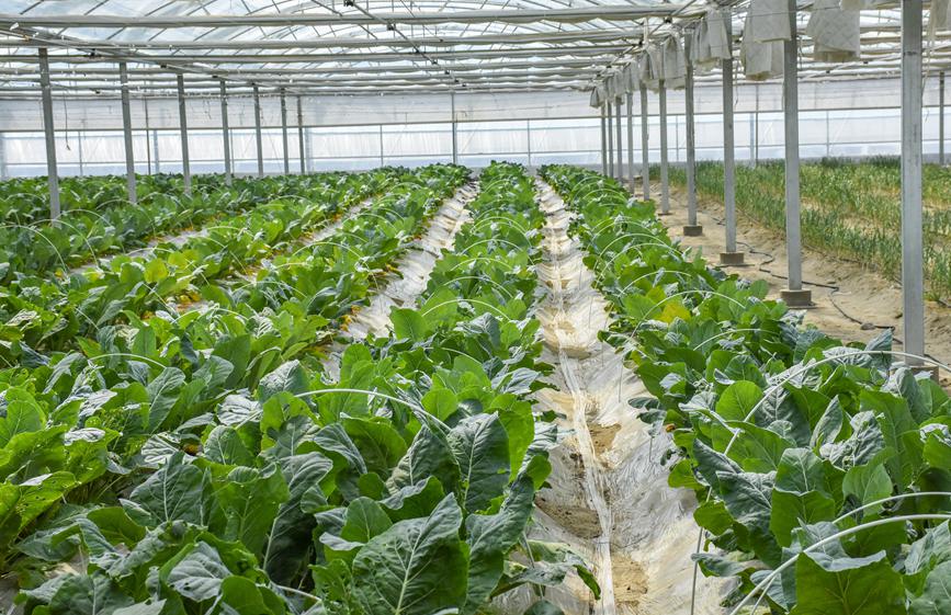 戈壁設(shè)施農(nóng)業(yè),不是簡單地在戈壁灘上開墾土地發(fā)展農(nóng)業(yè),而是要將光、熱、水、肥、土壤等一系列生產(chǎn)要素進行合理配置。綠之源的規(guī)劃建設(shè),走出了一條節(jié)地、節(jié)水、高效循環(huán)的戈壁生態(tài)農(nóng)業(yè)發(fā)展路子。節(jié)地,充分利用了閑置的戈壁荒灘資源,不占耕地,有效解決了菜糧爭地矛盾;節(jié)水,日光溫室作物生產(chǎn),全部配套了膜下滴灌技術(shù),使有限的水資源得到了高效利用;高效循環(huán),溫室采取“套種”種植模式,讓土地不空茬,連作多種作物,有效提高溫室利用率,實現(xiàn)“全年種植、全年采收”,改善了土壤沙化環(huán)境,提升了土壤地力,更是提高了蔬菜品質(zhì)。