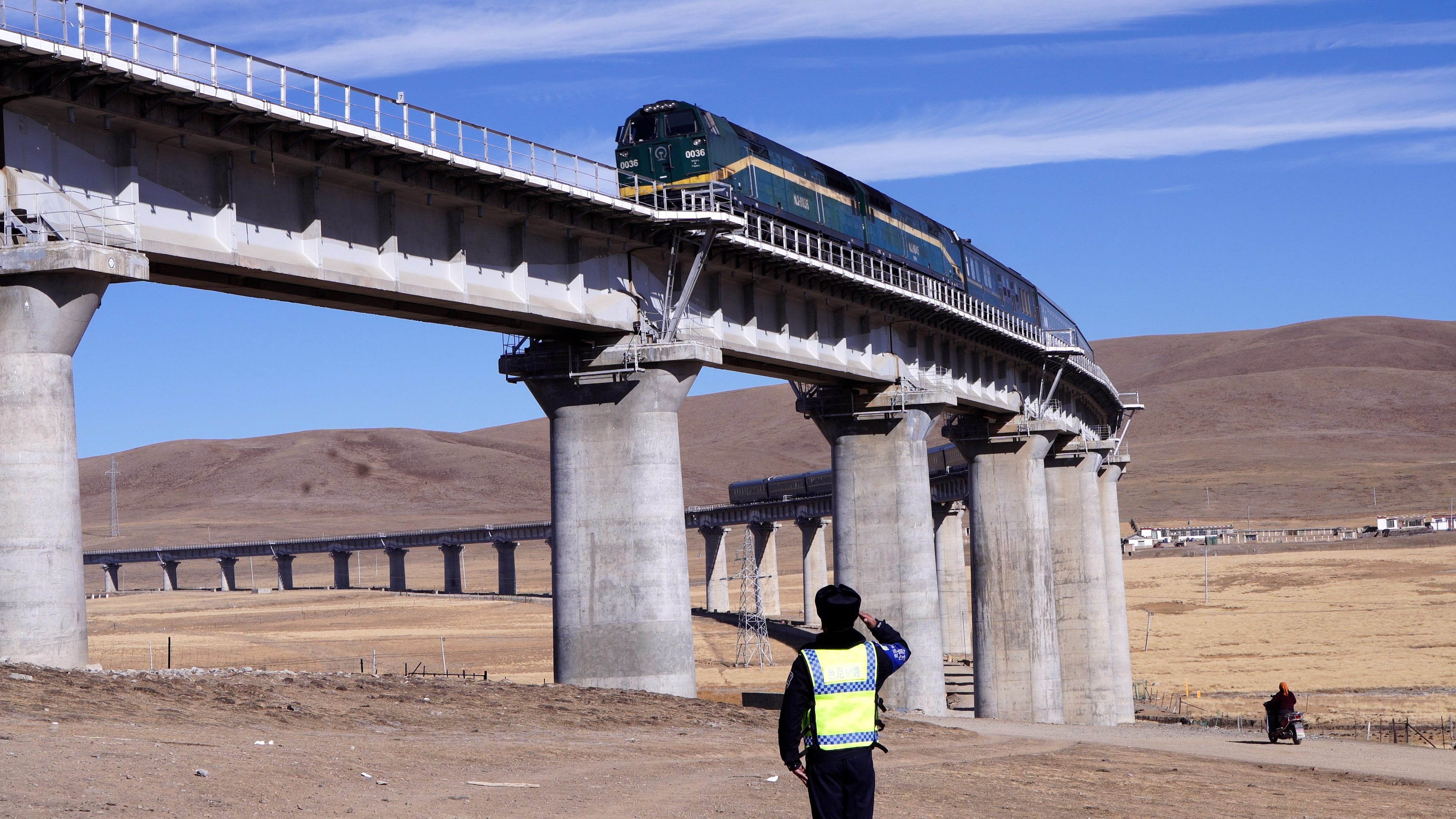 火車的轟鳴從遠處傳來,聲音逐漸急促,仿佛它也瞧到了自己平素運行的軌道上出現(xiàn)了不尋常的一幕?!稗Z……”巨響夾雜著大風(fēng)從身側(cè)吹過,看了火車那么多年,這還是次仁歐珠第一次近距離感受這個大家伙的巨大威能。