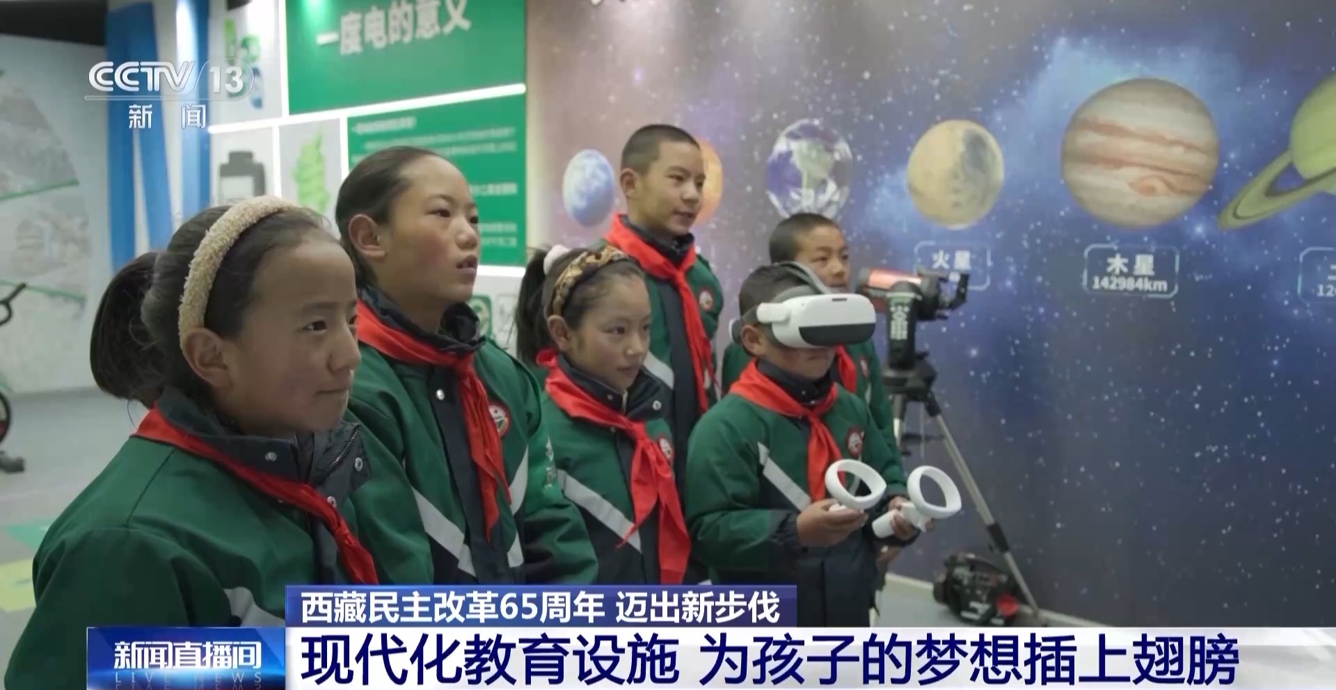 在援藏資金的幫助下,現(xiàn)在,學校不僅有現(xiàn)代化的氣膜球館,還有舞蹈房、鋼琴室、繪畫室、科技館等。在科技館,學生們可以通過VR體驗了解航天、環(huán)保等知識。這些配備齊全的現(xiàn)代化教育設施,為藏北孩子們的夢想插上了新的翅膀。