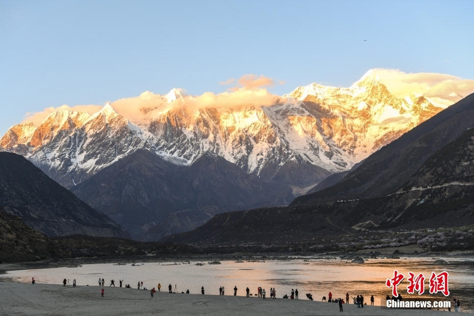 圖為游客在南迦巴瓦峰腳下觀賞“日照金山”。中新社記者 貢嘎來(lái)松 攝
