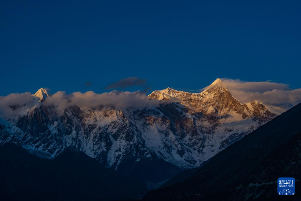 這是在索松村附近拍攝的南迦巴瓦峰夕照(4月1日攝)。新華社記者 孫非 攝