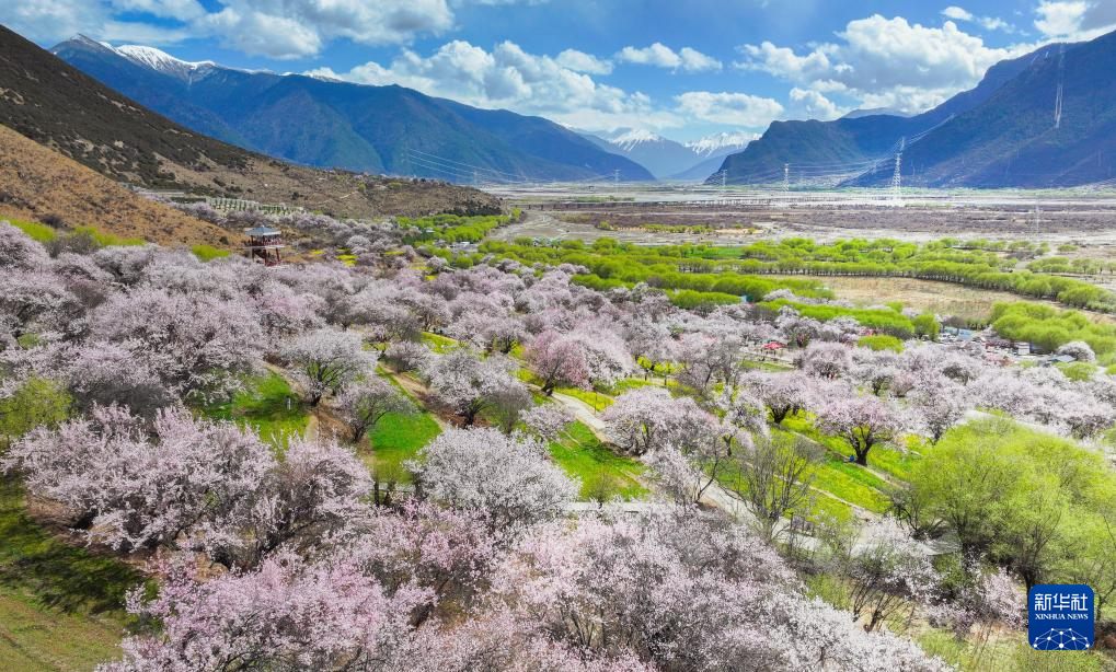 這是林芝市波密縣傾多鎮(zhèn)的桃林(4月2日攝,無(wú)人機(jī)照片)。新華社記者 丁汀 攝