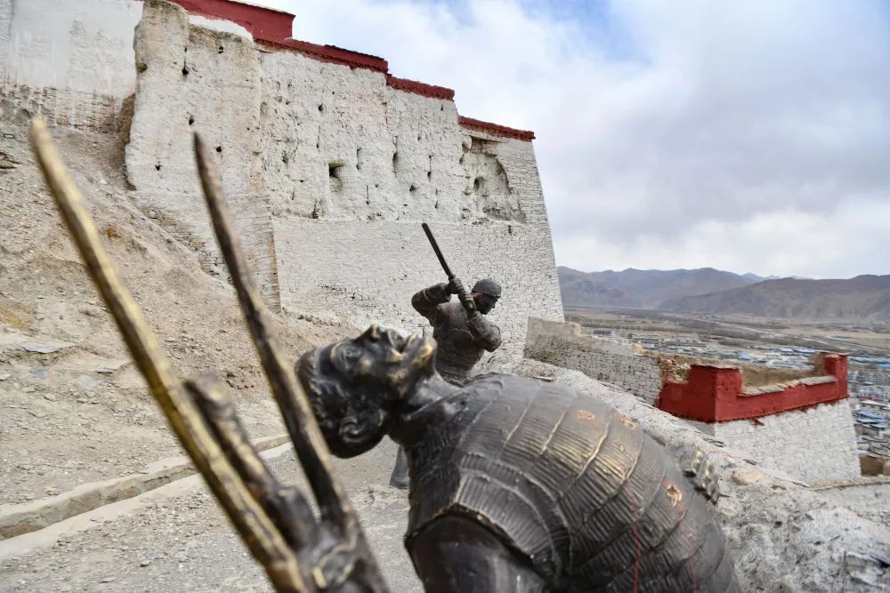 江孜宗山古堡上展現(xiàn)當(dāng)年抗英戰(zhàn)斗的雕塑(晉美多吉 攝)