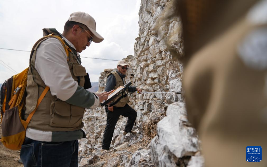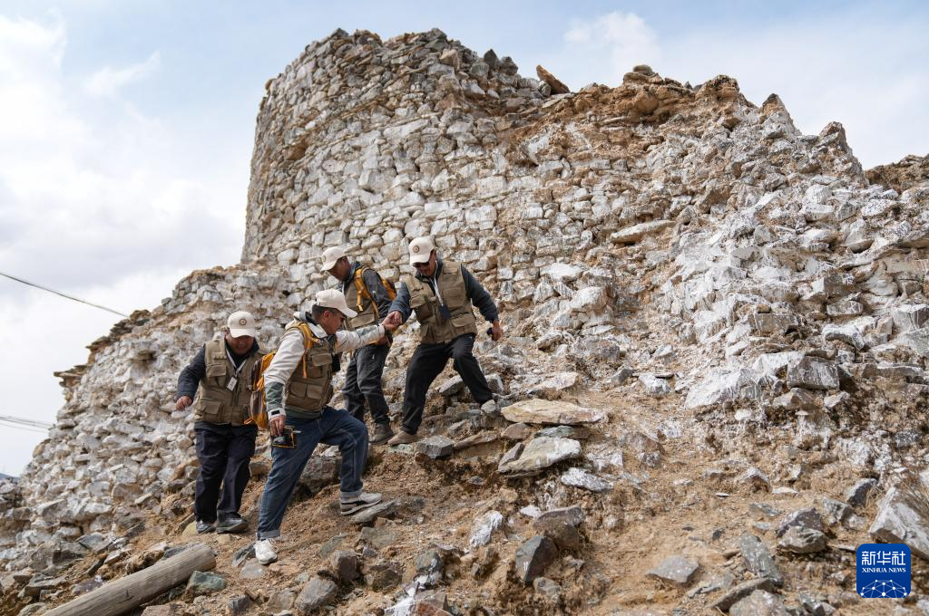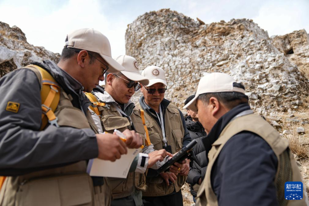 4月11日,普查人員在曲果崗塔群遺址現(xiàn)場開展數(shù)據(jù)采集。新華社記者 晉美多吉 攝