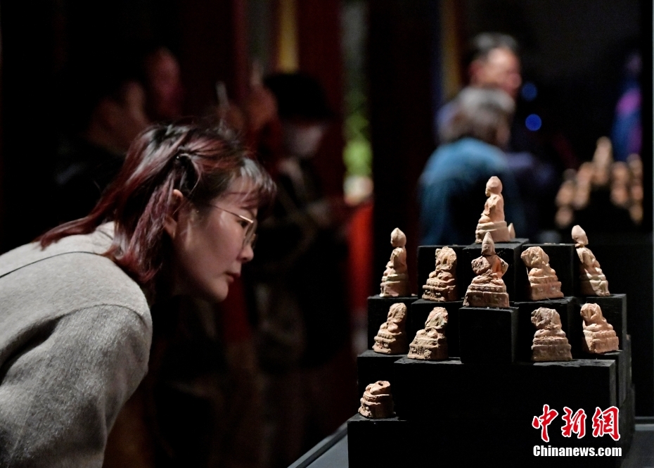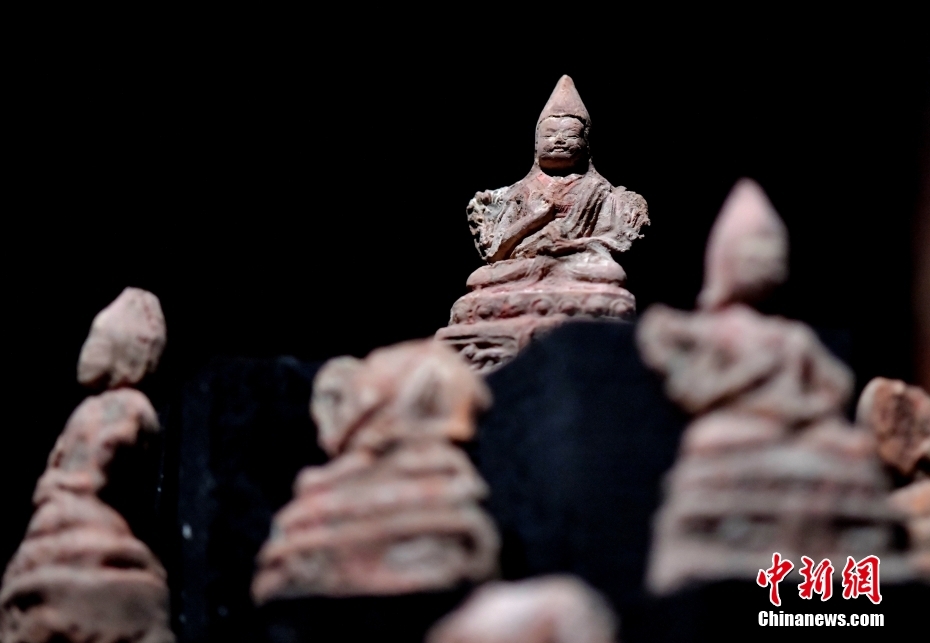 4月13日下午,“聚沙為塔——吉崩崗拉康文物回歸特別展覽”在拉薩吉本崗藝術中心開幕,以近期回歸古建的3000余件文物為主要內容,梳理了古建歷史與文物源流。圖為展覽中的擦擦(脫模泥塑造像)。