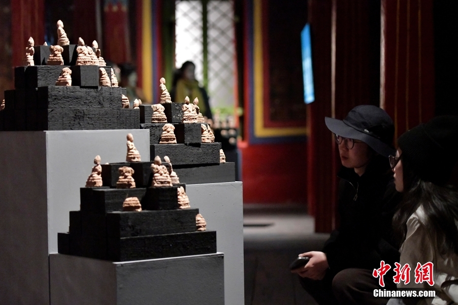 4月13日下午,“聚沙為塔——吉崩崗拉康文物回歸特別展覽”在拉薩吉本崗藝術中心開幕,以近期回歸古建的3000余件文物為主要內容,梳理了古建歷史與文物源流。圖為觀眾正在欣賞展覽中的擦擦(脫模泥塑造像)。
