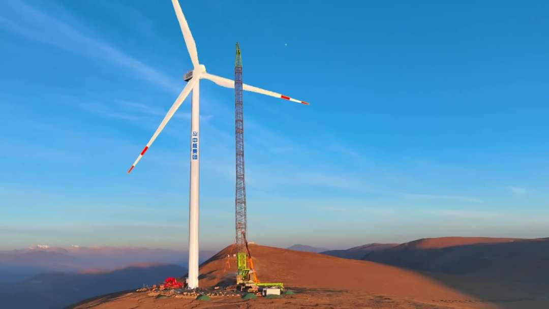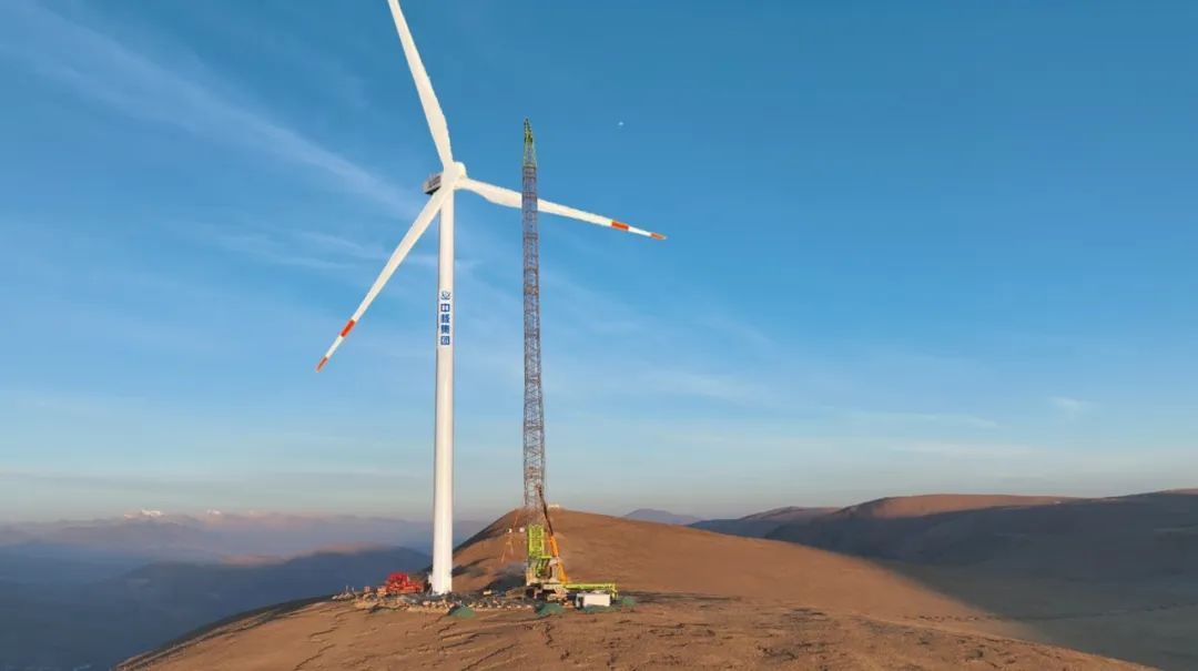 4月20日,在西藏自治區(qū)日喀則市薩迦縣的高原山地上,由中核匯能西藏公司投資、中核二二公司承建的中核集團(tuán)首個(gè)在藏風(fēng)電項(xiàng)目——中核薩迦30萬(wàn)千瓦風(fēng)光儲(chǔ)一體化項(xiàng)目風(fēng)電場(chǎng)首臺(tái)風(fēng)機(jī)吊裝完成。根據(jù)測(cè)算,該風(fēng)電場(chǎng)區(qū)最高海拔達(dá)到5193米,是目前世界上在建海拔最高、單體容量最大的風(fēng)電項(xiàng)目。