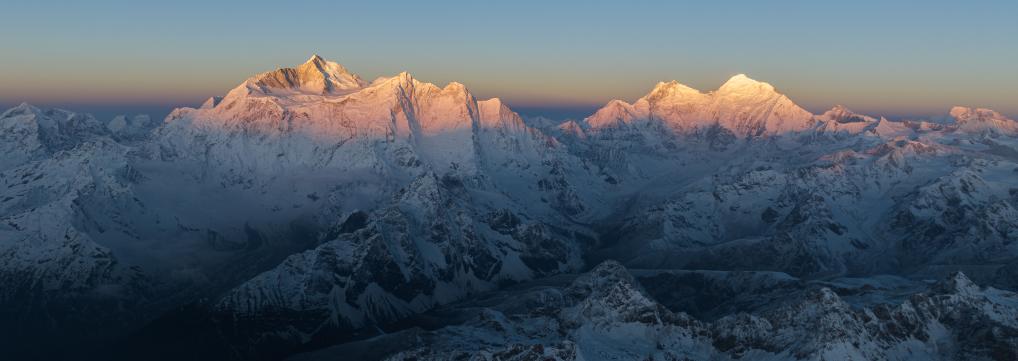 這是晨光照耀下的喜馬拉雅山脈一隅(4月17日攝,無(wú)人機(jī)照片)。新華社記者 洛卓嘉措 攝