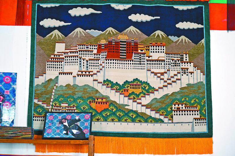 圖為喀瓦堅藏毯廠生產(chǎn)的以“布達拉宮”為題材的藏毯。記者 趙越 攝