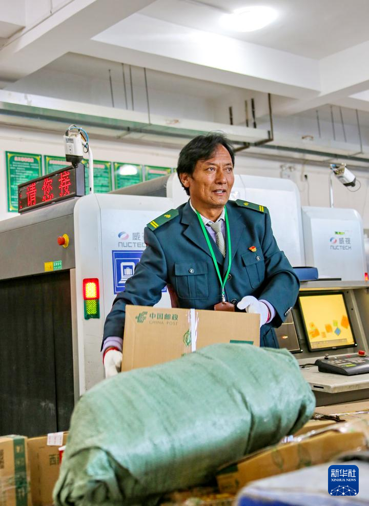 桑布在分揀郵件(2023年6月15日攝)。新華社發(fā)(倉央群旦攝)
