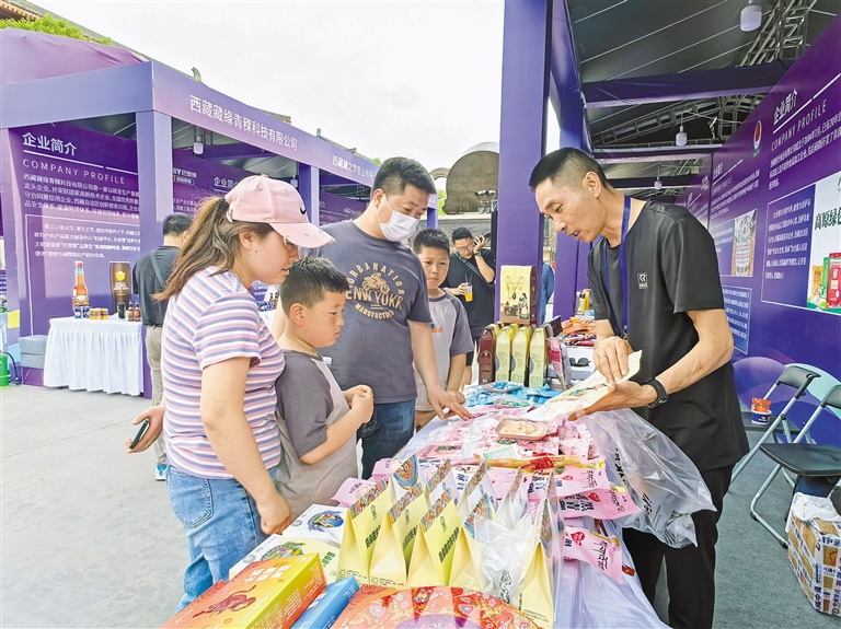 “牦牛肉干、青稞餅干等西藏特產(chǎn)都是健康綠色有機食品,應該讓更多的人了解?!睆暮眮砦靼猜糜蔚睦壮F(xiàn)場購買了一聽青稞啤酒,打開品嘗后,他豎起了大拇指。從未踏足西藏的他,在西安品嘗到了西藏“味道”。