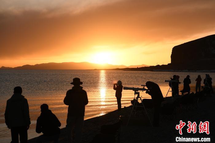 體驗(yàn)結(jié)束后,邀請(qǐng)嘉賓就座開(kāi)始觀測(cè)星空,由西藏天文歷算有關(guān)專家簡(jiǎn)要為游客講解天文歷算及星空觀象相關(guān)知識(shí)?,F(xiàn)場(chǎng)擺放10臺(tái)星空觀測(cè)設(shè)備,供現(xiàn)場(chǎng)游客自行觀察納木錯(cuò)的星空。