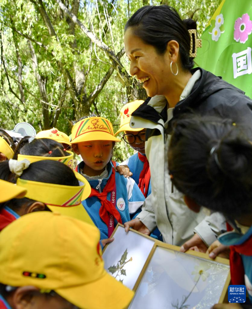 5月22日,西藏大學(xué)生態(tài)環(huán)境學(xué)院副教授索南措向小學(xué)生普及植物多樣性知識(shí)。新華社記者 張汝鋒 攝