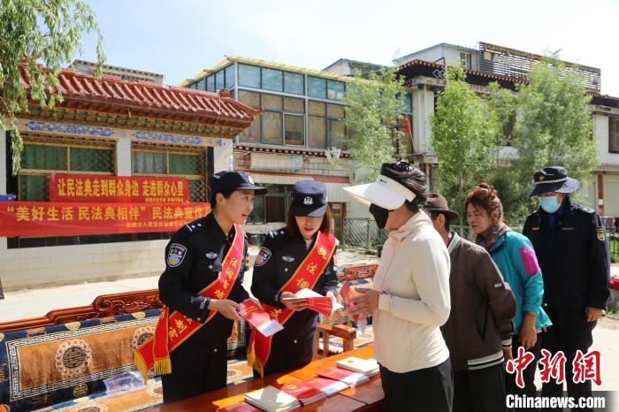 圖為西藏邊檢總站執(zhí)法調(diào)查支隊(duì)民警向民眾普及《民法典》知識(shí)。徐錫萬(wàn) 攝