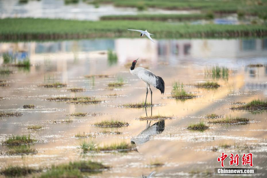 6月12日,西藏那曲市申扎縣一只黑頸鶴在濕地里覓食。申扎縣,平均海拔超過4500米,是黑頸鶴在中國的主要繁殖地之一。每年4月到6月,成群的黑頸鶴會來到這里,筑巢、孵化、養(yǎng)育下一代。近年來,為了保護這些珍貴的生靈,申扎縣采取了一系列措施,設(shè)立了監(jiān)測站,對黑頸鶴的棲息地進行24小時監(jiān)控,確保它們的繁殖不受干擾。黑頸鶴是國家一級保護動物,也是世界上唯一一種生長、繁殖在高原的鶴類。貢嘎來松 攝
