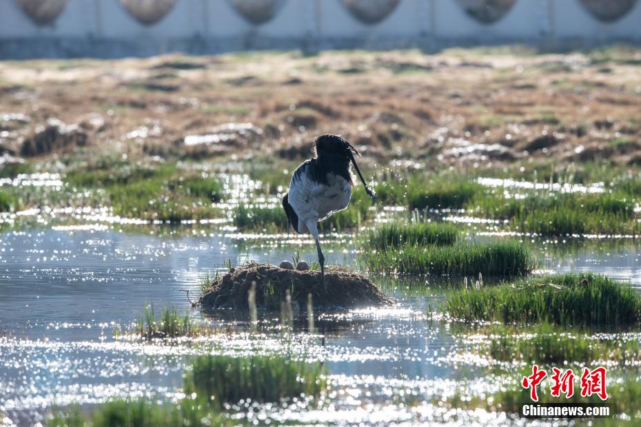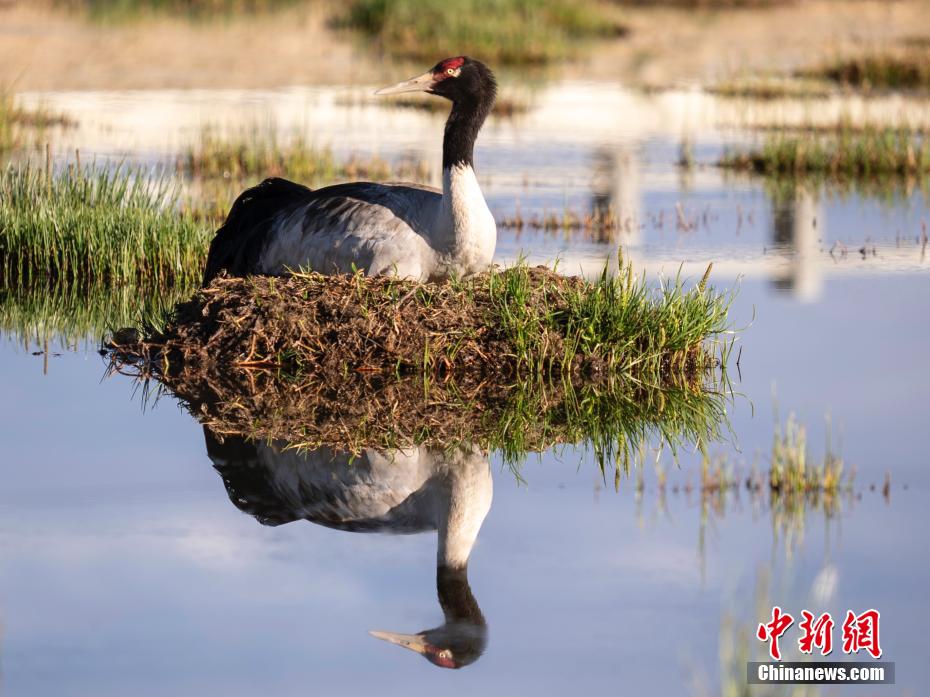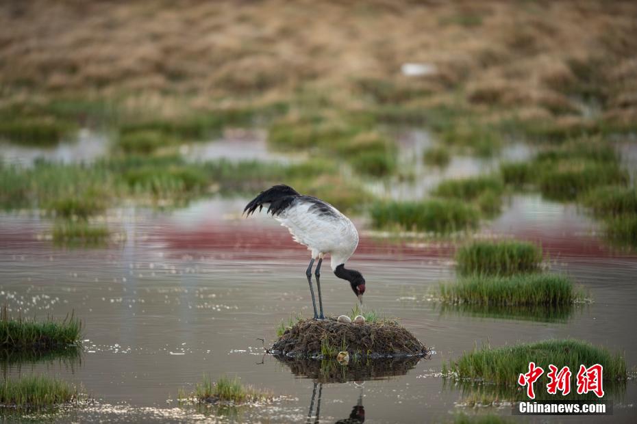 6月12日,西藏那曲市申扎縣濕地里一只黑頸鶴正準備孵蛋。申扎縣,平均海拔超過4500米,是黑頸鶴在中國的主要繁殖地之一。每年4月到6月,成群的黑頸鶴會來到這里,筑巢、孵化、養(yǎng)育下一代。近年來,為了保護這些珍貴的生靈,申扎縣采取了一系列措施,設(shè)立了監(jiān)測站,對黑頸鶴的棲息地進行24小時監(jiān)控,確保它們的繁殖不受干擾。黑頸鶴是國家一級保護動物,也是世界上唯一一種生長、繁殖在高原的鶴類。貢嘎來松 攝