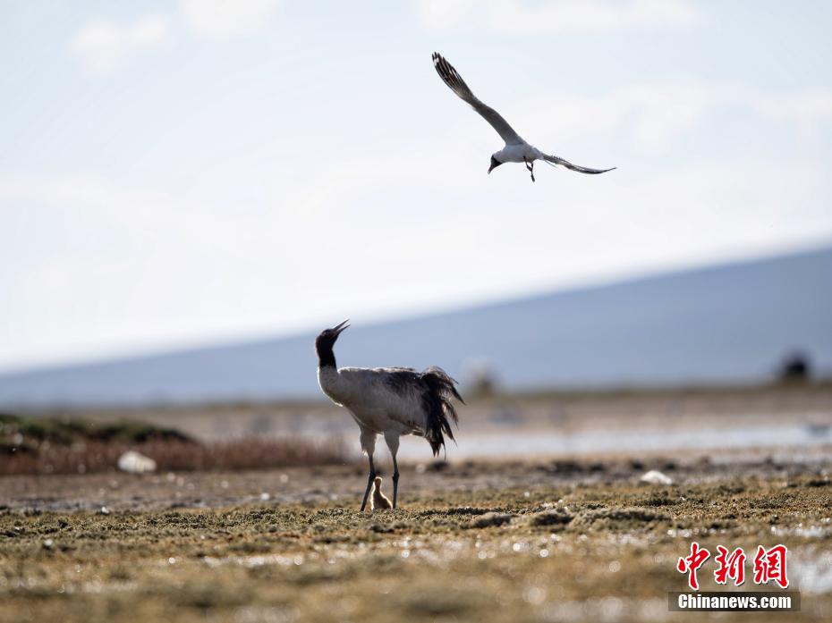 圖為破殼不久的小黑頸鶴在學(xué)習(xí)覓食。貢嘎來松 攝
