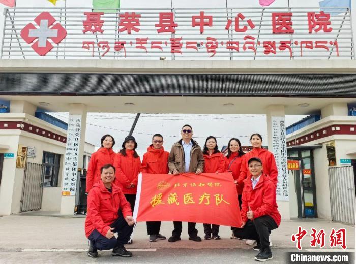 北京協(xié)和醫(yī)院第九批醫(yī)療人才“組團(tuán)式”援藏醫(yī)療隊(duì)在吳東院長的帶領(lǐng)下來到海拔4700米的聶榮縣中心醫(yī)院義診。北京協(xié)和醫(yī)院供圖