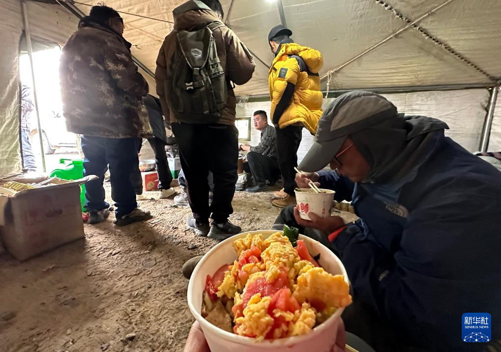6月13日,記者在享用帳篷里的晚餐。新華社記者 費茂華 攝
