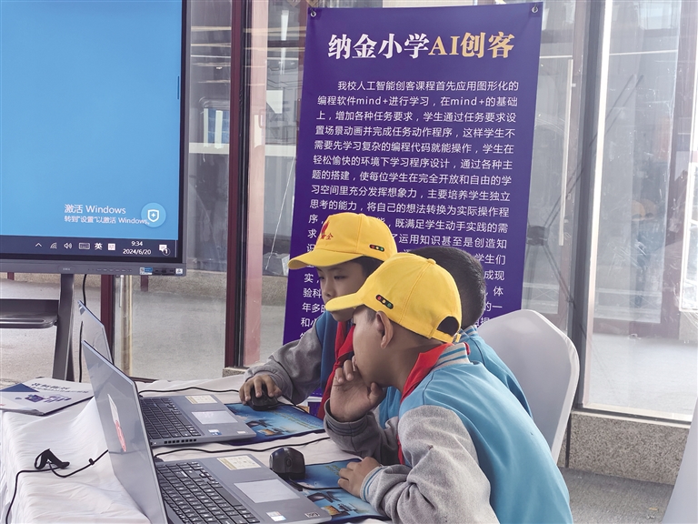 除了植物自動(dòng)檢測(cè)器外,現(xiàn)場(chǎng)還有實(shí)驗(yàn)小學(xué)學(xué)生、納金小學(xué)學(xué)生用電腦編程的“音樂會(huì)”“氣控游戲”等,各類童真的奇思妙想在數(shù)字教育中得到實(shí)現(xiàn)。