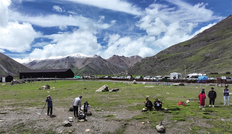 “眼前的景色如此浩瀚,無論我們?nèi)绾闻?,都無法將其完全收入眼底;手中的相機快門不停地按下,卻總感覺無法捕捉到每一處細節(jié)的美麗;社交媒體上的照片和視頻,雖然已經(jīng)分享了無數(shù),但總覺得還有更多美好未能展現(xiàn)。言語在這一刻顯得如此蒼白無力,無法完全傳達我們面對美景時的激動心情?!边@是河南游客張曉明和劉芳夫婦對薩普雪山的贊美。置身于這絕美的畫卷中,一聲聲驚嘆,是他們對大自然鬼斧神工的贊美,也是他們內(nèi)心震撼的真實寫照。