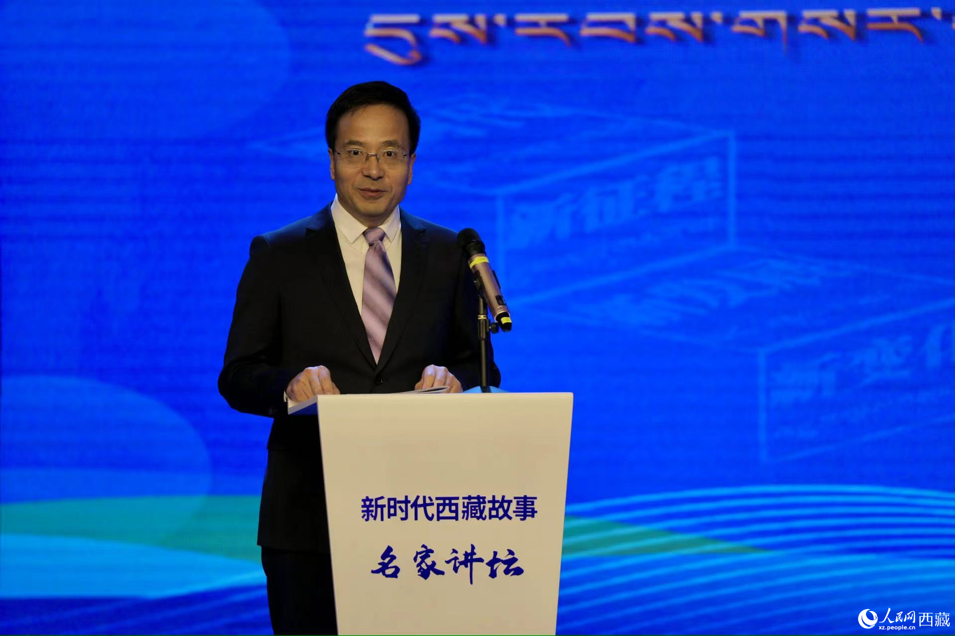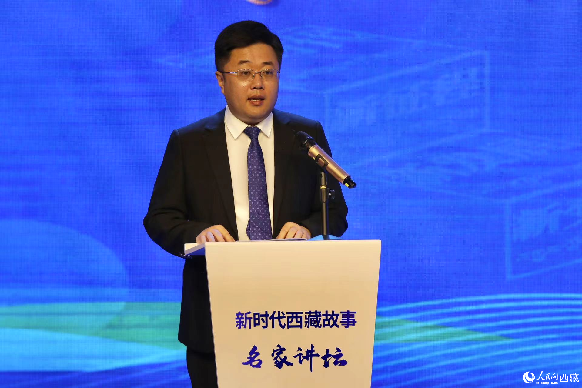 西藏自治區(qū)黨委宣傳部副部長(zhǎng),西藏自治區(qū)社會(huì)科學(xué)院黨組書記,中央和國(guó)家機(jī)關(guān)第七批、第八批援藏干部孫向軍作主題演講。人民網(wǎng)記者 次仁羅布攝