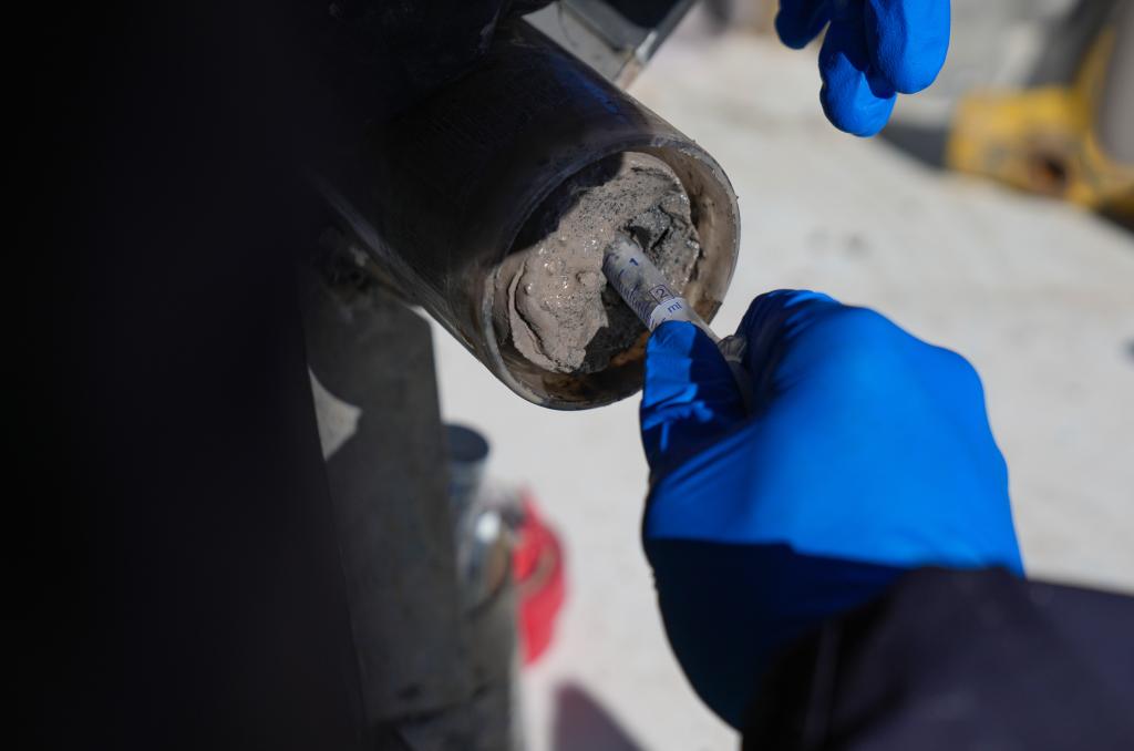 鉆取含有泥土、砂石的湖泊巖芯卻是一項復(fù)雜且精細的工作。科研人員利用集成的鉆探系統(tǒng),小心翼翼地從湖底取出連續(xù)的湖泊巖芯樣本,這些裝著湖泊巖芯的采樣管如同“時間膠囊”,封存著青藏高原納木錯地區(qū)百萬年來的環(huán)境氣候變化信息。