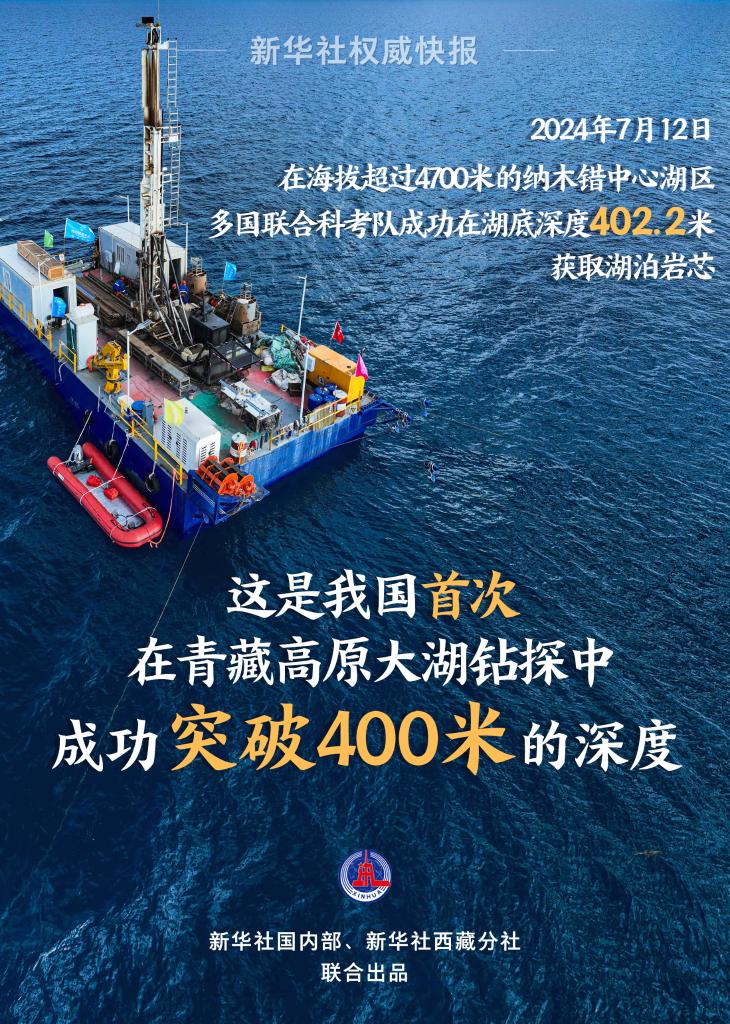 納木錯(cuò)湖泊科考正在緊密開(kāi)展。7月12日18時(shí)35分,在海拔超過(guò)4700米的納木錯(cuò)中心湖區(qū),多國(guó)聯(lián)合科考隊(duì)經(jīng)過(guò)不懈努力,成功在湖底深度402.2米的地方獲取了湖泊巖芯。這是我國(guó)首次在青藏高原大湖鉆探中成功突破400米深度,對(duì)我國(guó)湖泊鉆探與古氣候的研究具有重要意義。