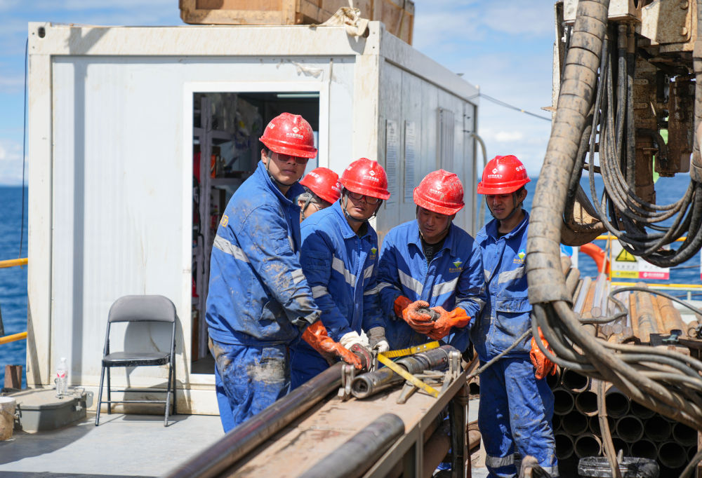 7月11日,白班當(dāng)班的鉆探隊(duì)員合影。新華社記者 晉美多吉 攝