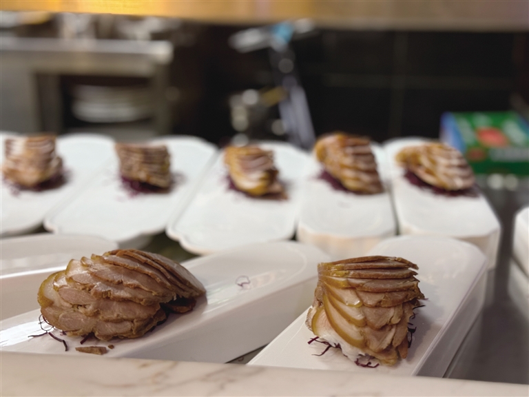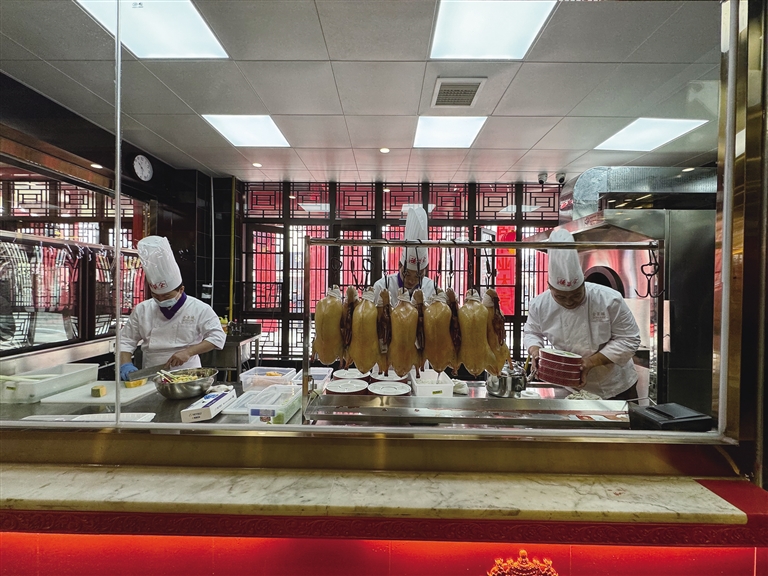 全聚德拉薩店選址于仙足島濱河路二期,店鋪設(shè)計(jì)匠心獨(dú)運(yùn),將古樸典雅的外部風(fēng)貌與簡(jiǎn)約優(yōu)雅的現(xiàn)代內(nèi)部裝飾巧妙融合。墻壁上隨處可見(jiàn)的掛畫(huà)在介紹著店鋪歷史的同時(shí),更為空間增添了一抹藝術(shù)氣息。開(kāi)業(yè)當(dāng)天,隨著歡快的開(kāi)場(chǎng)舞響起,慶典活動(dòng)正式拉開(kāi)帷幕?,F(xiàn)場(chǎng),片鴨師傅們以精湛的技藝展示著全聚德的獨(dú)特魅力,一只只色澤誘人的烤鴨在他們的巧手下化身為薄如蟬翼的鴨肉片,搭配新鮮的蔥絲、黃瓜條及特制甜面醬卷入薄餅中,一口咬下,鮮美與香甜在口中瞬間綻放,令人回味無(wú)窮。