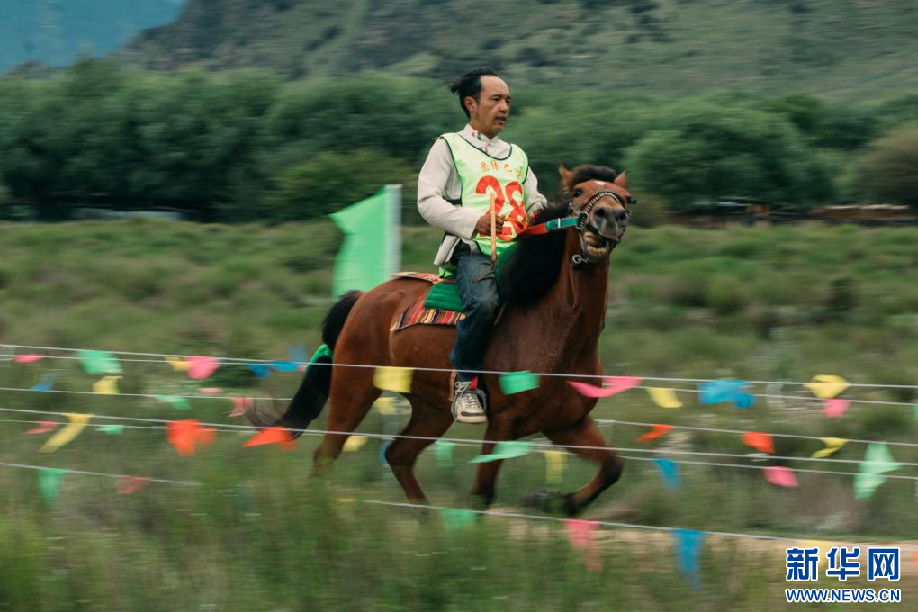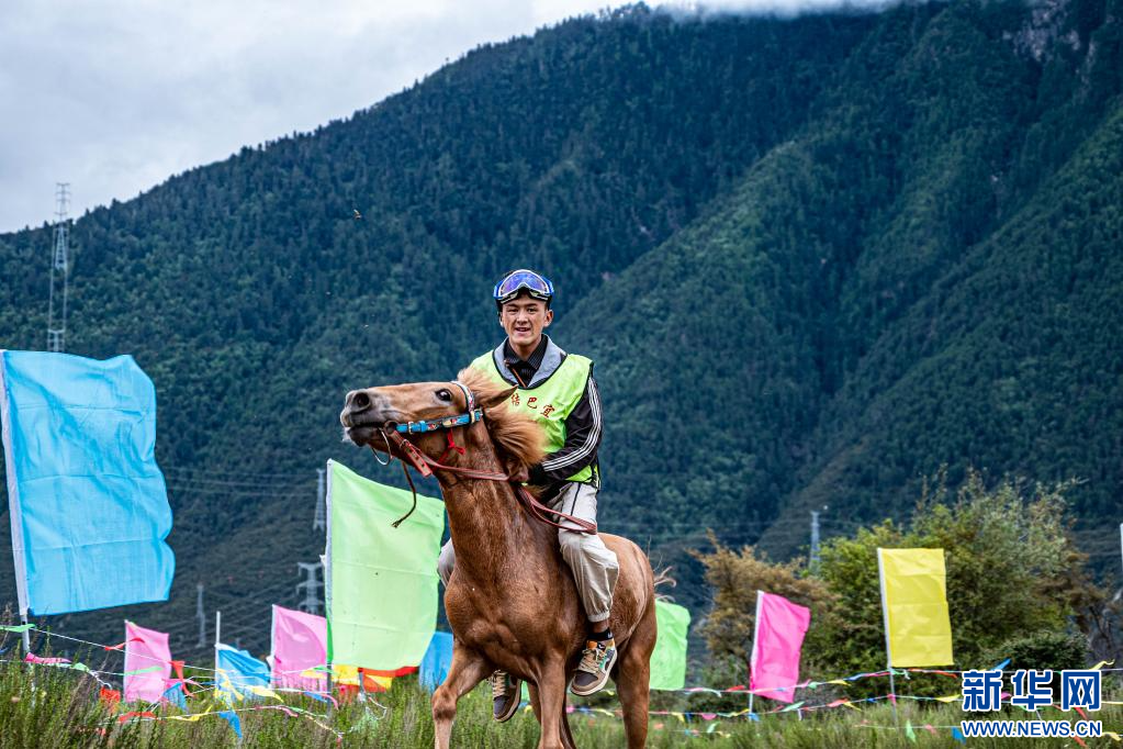 西藏林芝市林芝鎮(zhèn)第七屆尼洋旅游文化之民俗賽馬藝術(shù)節(jié)活動(dòng)現(xiàn)場(chǎng)(7月22日攝)。新華網(wǎng) 旦增努布 攝