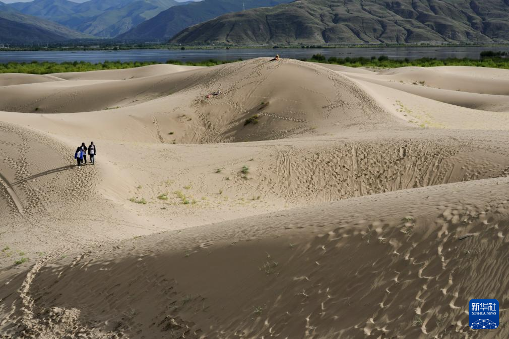 游客在扎囊國家沙漠公園游玩(7月30日攝)。新華社記者 張汝鋒 攝