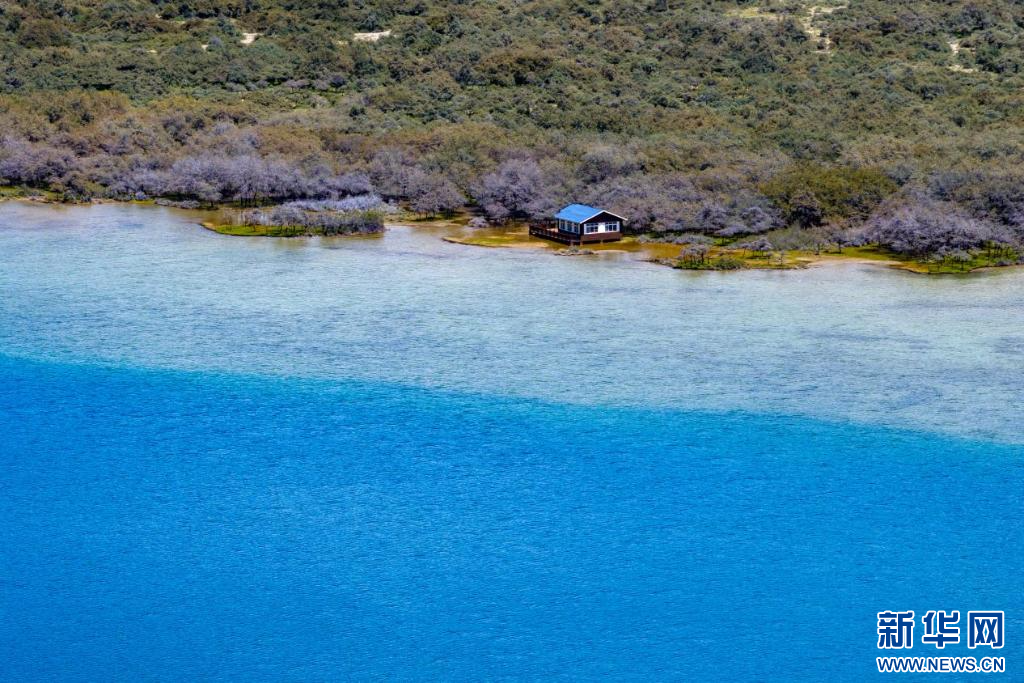 8月1日拍攝的三色湖一角(無人機(jī)照片)。新華網(wǎng) 旦增努布攝