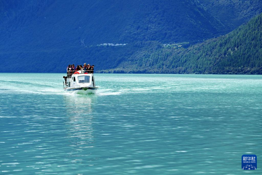 巴松措里的游船(8月2日攝)。新華社記者 張汝鋒 攝
