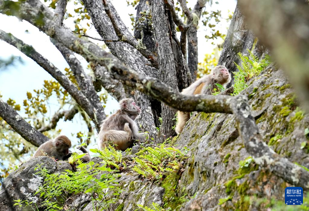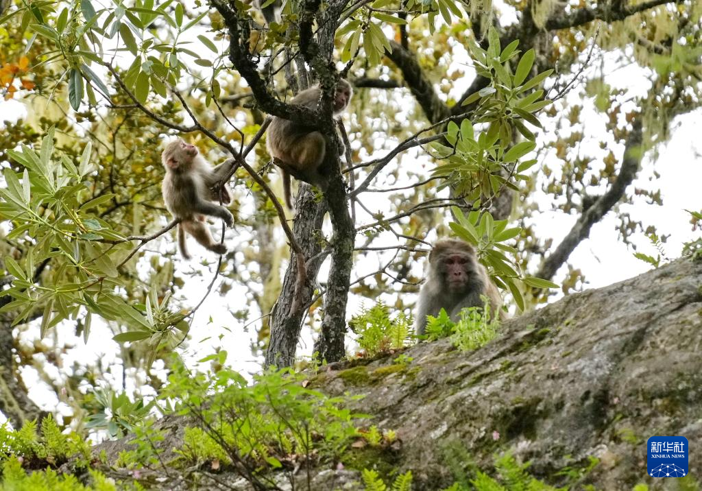 巴松措旅游風(fēng)景區(qū)里的藏獼猴(8月2日攝)。新華社記者 張汝鋒 攝