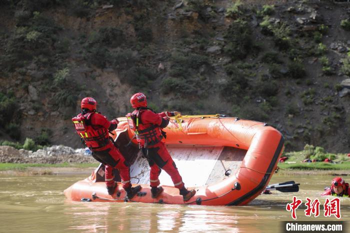 圖為昌都森林消防進行翻舟自救訓練。劉星文 攝
