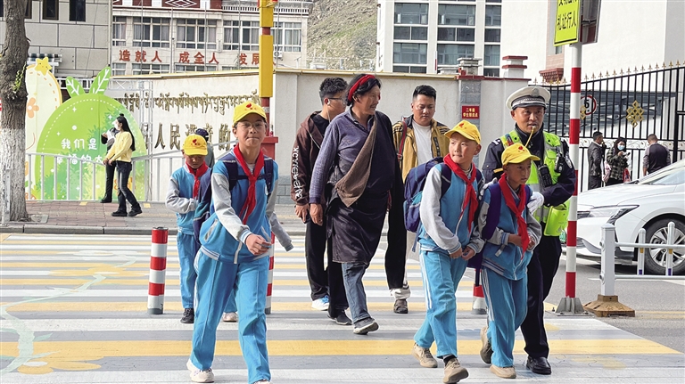 此外,拉薩交警還利用每日“護(hù)學(xué)崗”時(shí)間,主動(dòng)引導(dǎo)學(xué)生正確過(guò)馬路、認(rèn)識(shí)交通信號(hào)燈,提醒學(xué)生不在馬路上嬉戲、追逐打鬧,不乘坐三輪摩托車(chē)等不規(guī)范車(chē)輛,并向接送學(xué)生的家長(zhǎng)講解接送孩子途中應(yīng)注意的安全事項(xiàng),告誡學(xué)生家長(zhǎng)以身作則,杜絕橫穿馬路、闖紅燈等交通陋習(xí),共同營(yíng)造安全、暢通、文明和諧的道路交通環(huán)境?!拔覀児膭?lì)孩子們將學(xué)到的交通安全知識(shí)帶回家,充分發(fā)揮‘小手拉大手’作用,向家人宣傳道路交通安全知識(shí),強(qiáng)化家長(zhǎng)、學(xué)生安全意識(shí)和自我保護(hù)意識(shí)。”馬定雄說(shuō)。