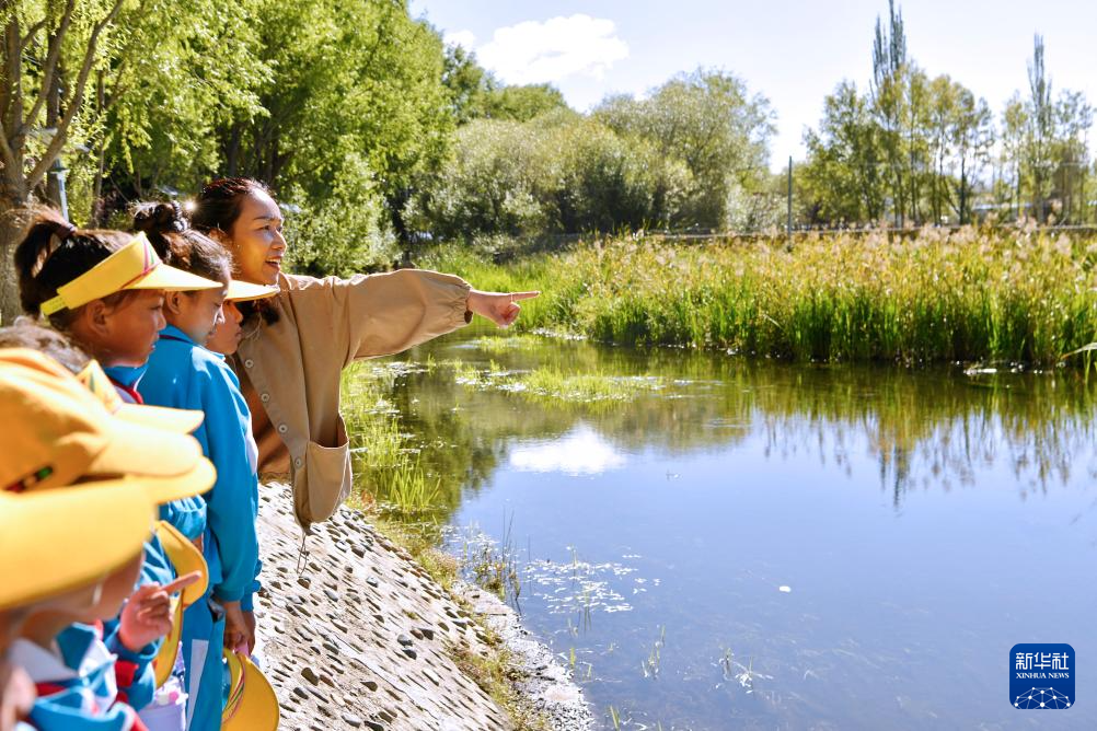 8月15日,拉魯濕地國(guó)家級(jí)自然保護(hù)區(qū)管理局的工作人員為小學(xué)生們進(jìn)行動(dòng)植物科普。