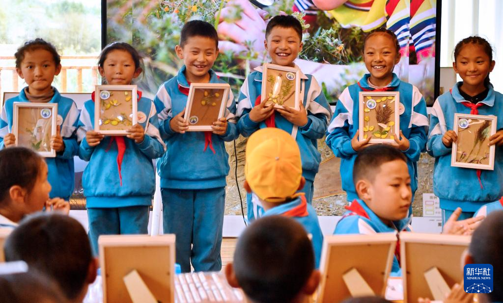 8月15日,拉魯小學(xué)的學(xué)生在拉魯濕地國(guó)家級(jí)自然保護(hù)區(qū)管理局科普小教室里向大家展示優(yōu)秀植物標(biāo)本。