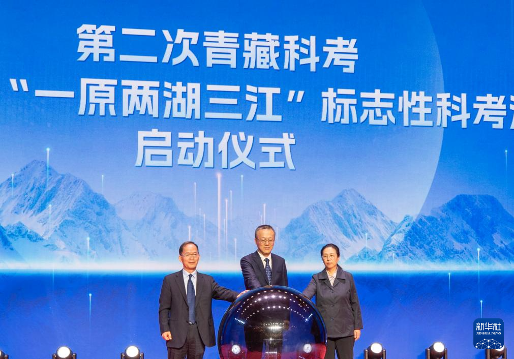 8月18日,嘉賓宣布“守護水塔:‘一原兩湖三江’重大標志性科考活動”啟動。新華社記者 姜帆 攝