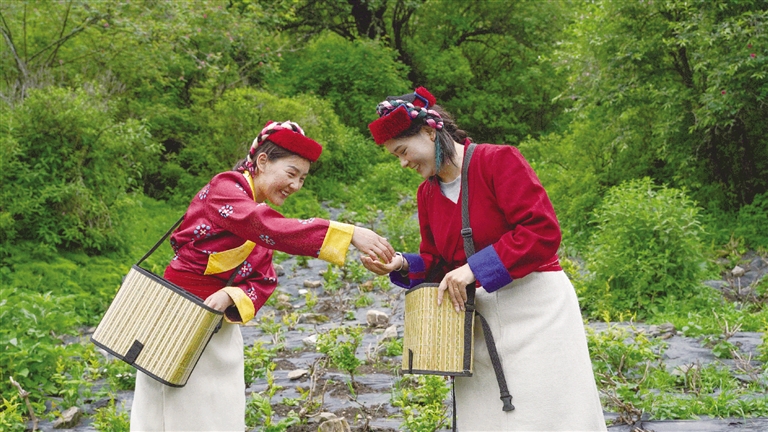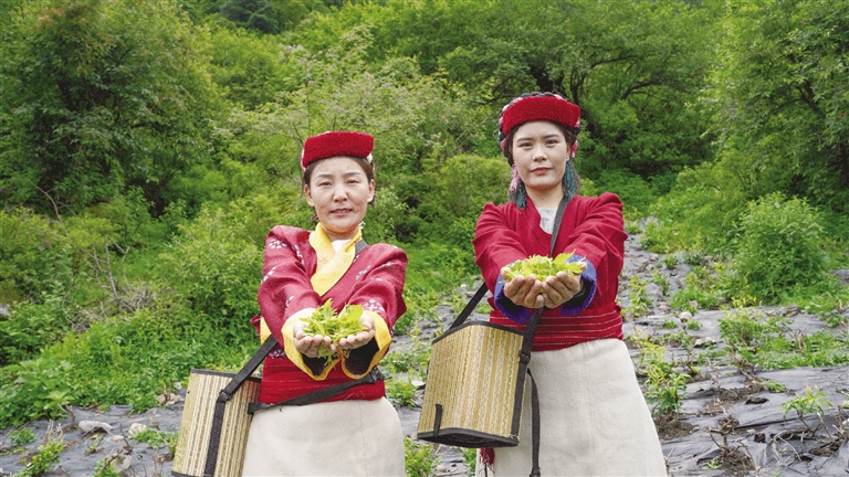 在綠意盎然的茶園中,幾位勤勞的婦女正凝視著茁壯成長的莓茶,眼中滿是贊許與喜悅。莓茶試種的這段歷程,直接惠及了周邊的村民,他們親眼見證了這些稚嫩幼苗如何一步步蛻變?yōu)榉泵牟铇?綠蔭如蓋,生機勃勃。“我們在茶園的工作是翻土、除草、種植、澆灌和采摘,一天能掙200塊錢,年底還有分紅,今年的采摘季也快到了,聽說今年的分紅會更多,村民都挺期待的?!卞e那市貢日門巴民族鄉(xiāng)斯木村村民卓瑪措姆說。