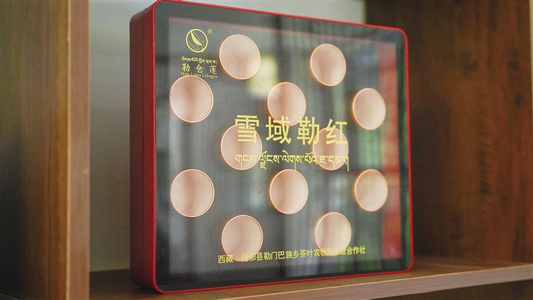 “針對小作坊和低收益的狀況,鄉(xiāng)里成立了茶葉農(nóng)牧民專業(yè)合作社,茶園總共有693畝,現(xiàn)在可采摘區(qū)域有210畝。覆蓋了黑茶、紅茶、綠茶等多個品種,并成功試制速溶茶打入市場,進一步豐富了產(chǎn)品線。同時,‘勒倉蓮’茶葉品牌也經(jīng)歷了包裝與設(shè)計的提檔升級,更加符合現(xiàn)代消費者的審美與需求。”勒門巴民族鄉(xiāng)勒村黨支部組織委員、紅綠茶技術(shù)人員達娃白瑪說。
