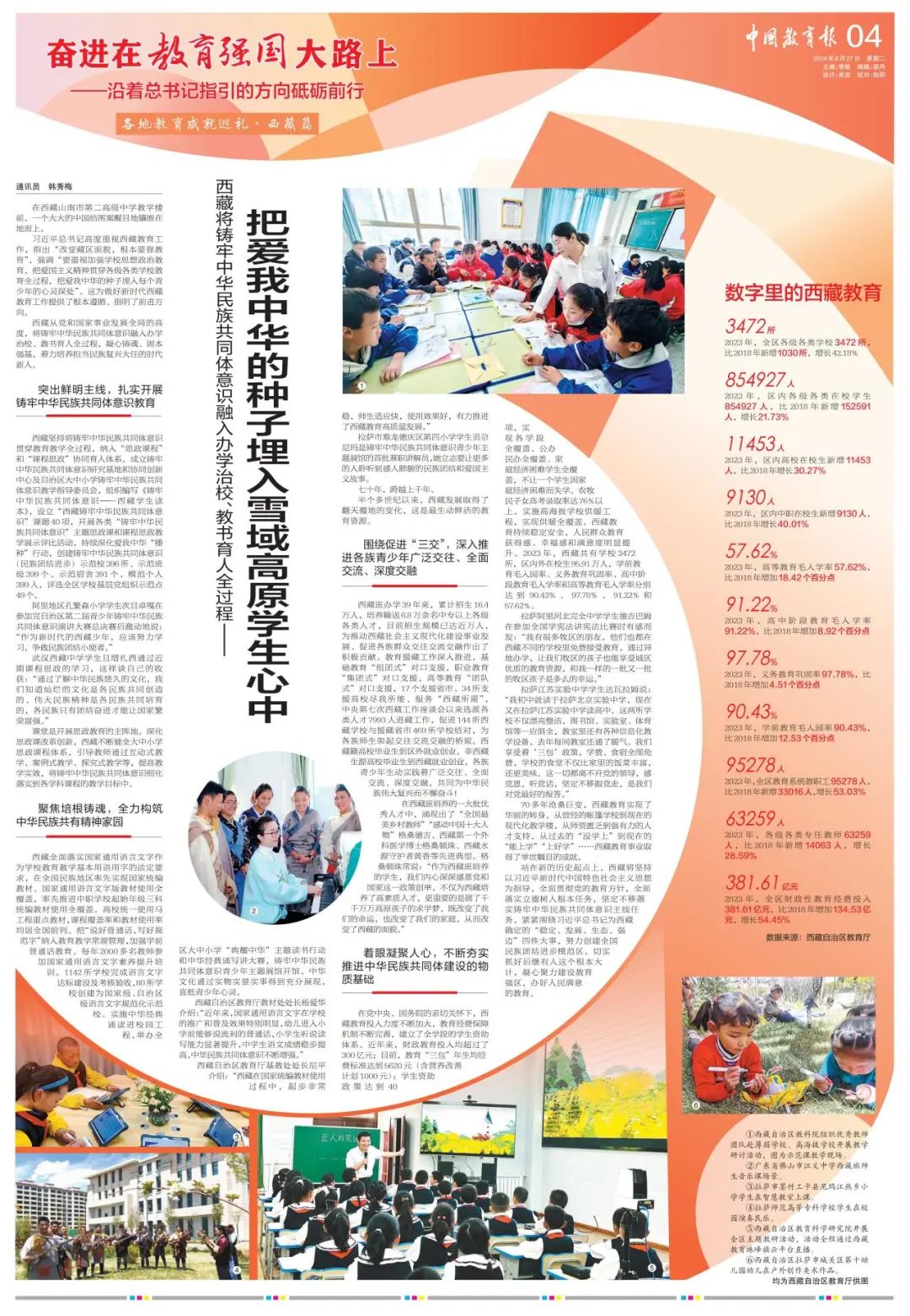 今天,“奮進(jìn)在教育強(qiáng)國(guó)大路上——沿著總書記指引的方向砥礪前行”專欄之“各地教育成就巡禮”系列,通過(guò)一個(gè)視頻、一組大圖、一篇報(bào)道介紹西藏如何將鑄牢中華民族共同體意識(shí)融入辦學(xué)治校、教書育人全過(guò)程——