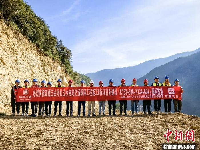 圖為扎拉水電站對外交通保障項目新建段道路順利貫通儀式現(xiàn)場。徐明朗 攝