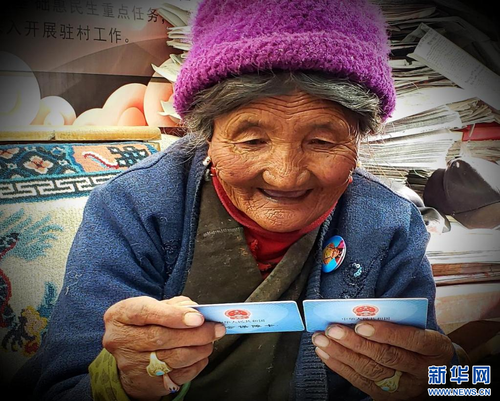圖為老人拿到社保卡后面露喜悅。 受訪者供圖