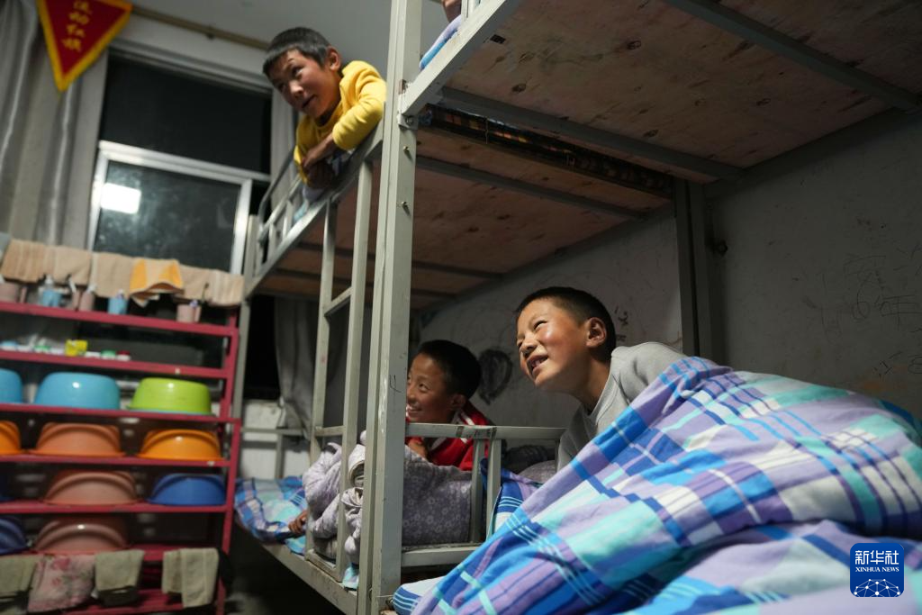 娘蒲鄉(xiāng)中心小學(xué)的學(xué)生們準(zhǔn)備就寢(9月3日攝)。新華社記者 晉美多吉 攝